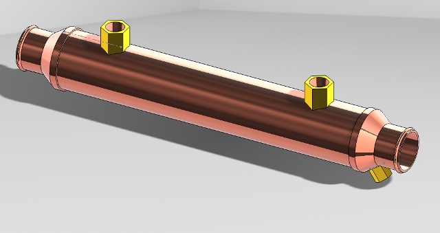 We produce oil coolers for higher pressures using either copper or brass shell material and wrought copper or cast brass ends.